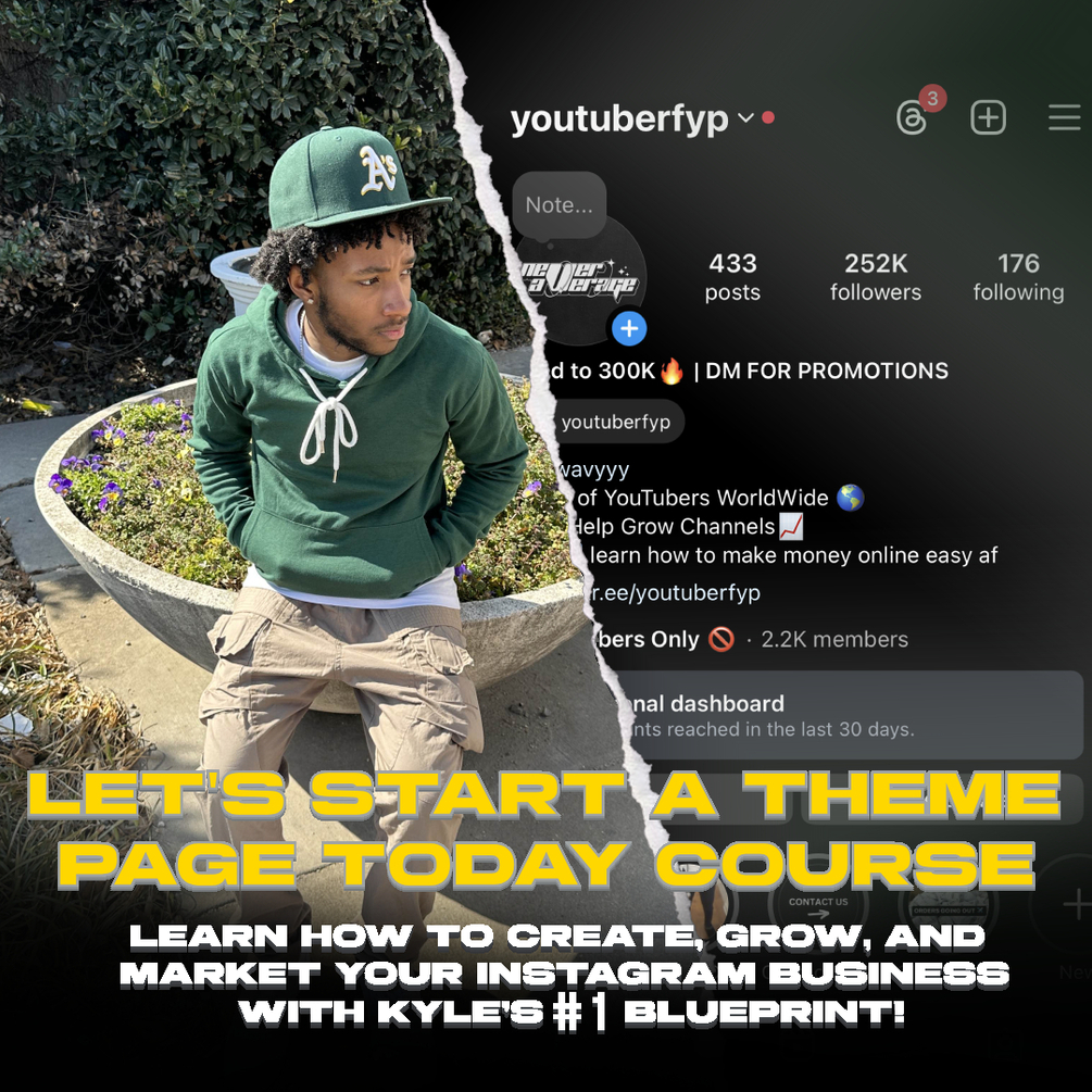 With a proven track record of transforming social media pages into lucrative businesses, I'm Kyle, founder of a thriving Instagram theme page with over 250,000 followers, TikTok with over 400,000 followers, and YouTube with 130,000 Subscribers. Join me as I share insider tips and strategies honed through years of experience in digital entrepreneurship.